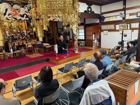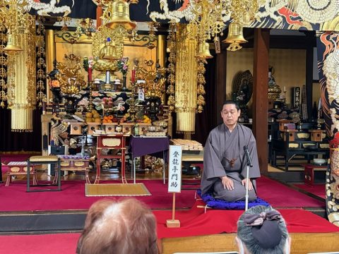 去る10月25日(土) 午前9時半より今年最後の法要であるお十夜法要を勤めることができました。十夜法要にお念仏を称えれば千年の功徳に値すると言われています。今年のお十夜法要は落語家の登龍亭門助さんには「つる」登龍亭幸福師匠には「松山鏡」の古典落語の演目を演じていただきました。秋の行事は皆様目白押しで参詣者はいつもより若干少なめでしたが無事に勤めることができました。ことしもあと二か月あまりとなりましたが皆様体調には十分気を付けて下さいませ。来年の年回表をごらんいただき法事の依頼はお早めにお願いしますね。